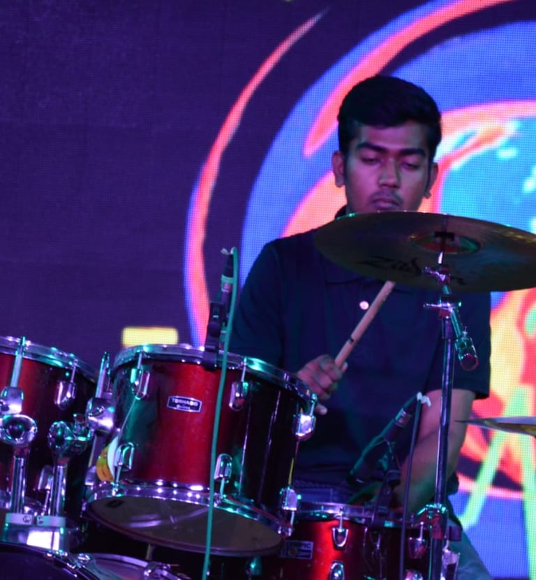 My musical journey began at a young age when my dad taught me to play the guitar. Those early lessons sparked a deep passion for music that has only grown over time. After learning the guitar, I picked up the congo, and soon after, I taught myself to play the drums, becoming a self-taught drummer. My curiosity for rhythm and melody led me to the tabla, where I achieved a Madhyama Purna qualification.